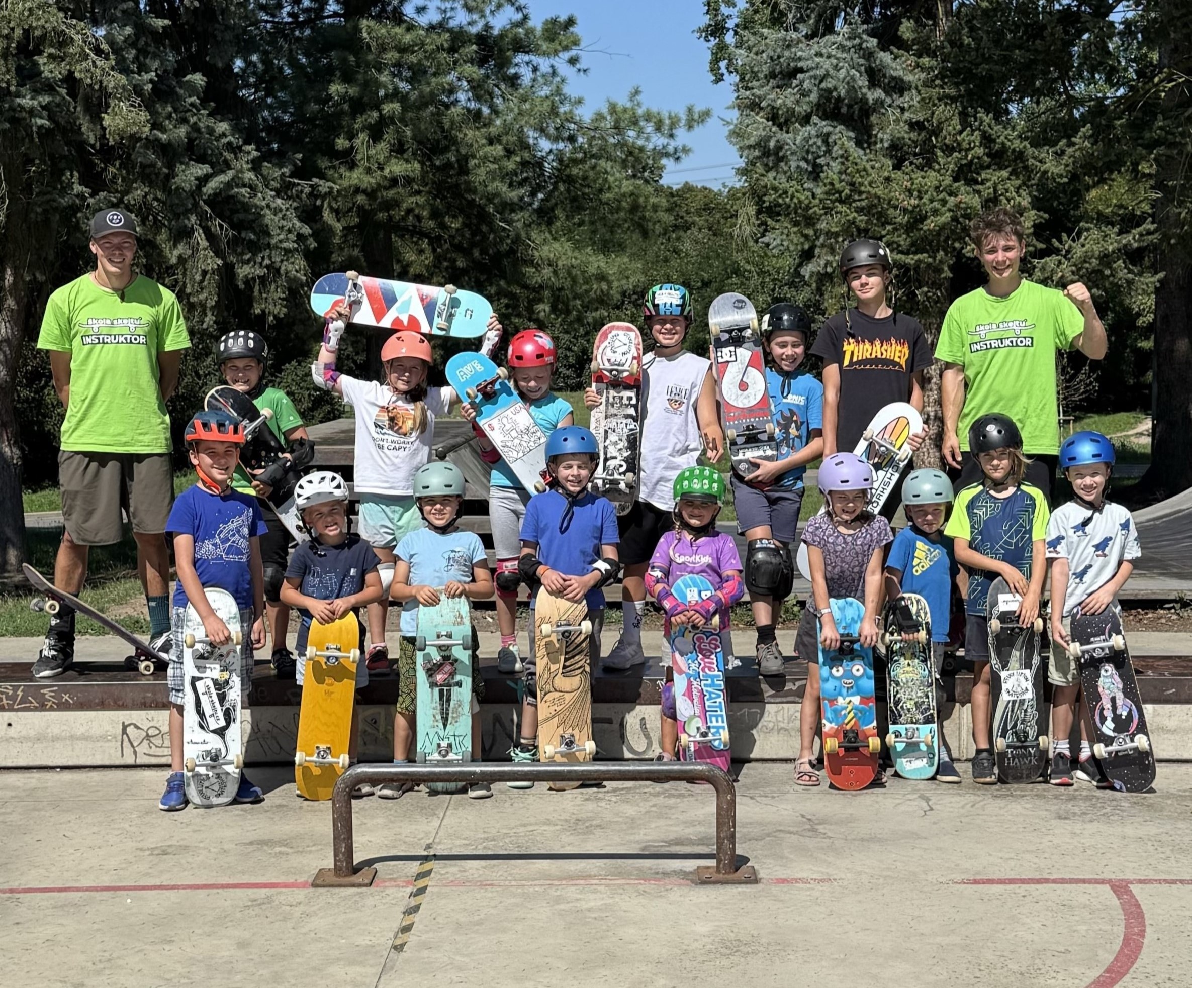 V kurzu škola skejtu ® vzniká velká parta skejťáků a skejťaček, kde se neučí pouze jezdit na skejtu, ikdyž je to naše primární zaměření, ale i respektu k sobě navzájem a pomáhání si. Pracujeme s dětmi různých povah a snažíme se je usměrňovat správným směrem. Pracujeme s nimi, protože když jsme byli v jejich věku, potřebovali jsme přesně takovou oporu, kterou se teď dětem snažíme být.